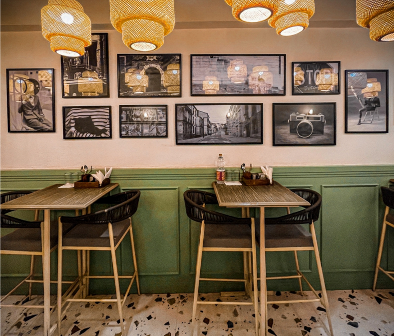 A dedicated bar stool seating corner provides a perfect spot for customers to enjoy their coffee and pastries. The bar stools are comfortable and stylish, offering a great vantage point to watch the baristas at work or simply take in the cafés delightful surroundings.