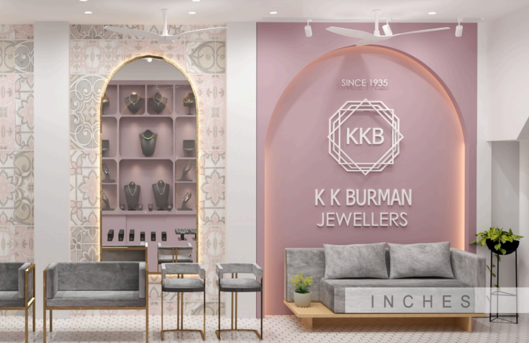 This jewelry store exudes royal elegance with Mughal-inspired prints and patterns, complemented by modern chic furniture. Every element is carefully curated to create a luxurious and inviting ambiance, offering an exquisite shopping experience that reflects the opulence of the Mughal era.